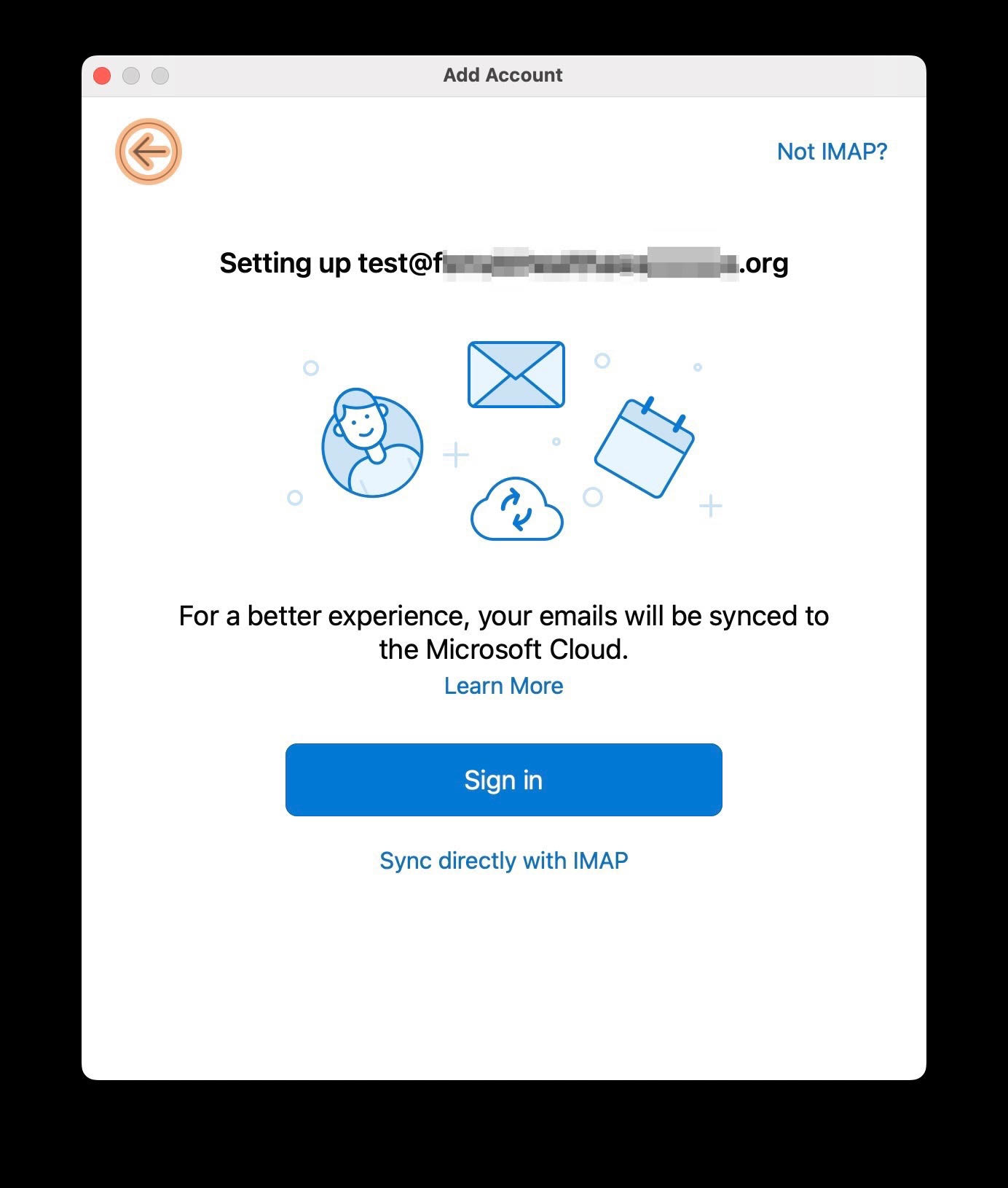 Since mail is on the server, and it's using IMAP, nothing should be lost by deleting and re-adding this IMAP account to Outlook. The only difference is to skip clicking the blue Sign In button during initial setup. Instead, go down the "Sync directly with IMAP" path. To remove the account you currently have, you can open accounts, highlight it and click the "minus" at the bottom. Click Sign Out On This Device (or all if you choose) and it will remove it. Then click the "plus" icon and re-add, this time with the "Sync directly with IMAP" choice.